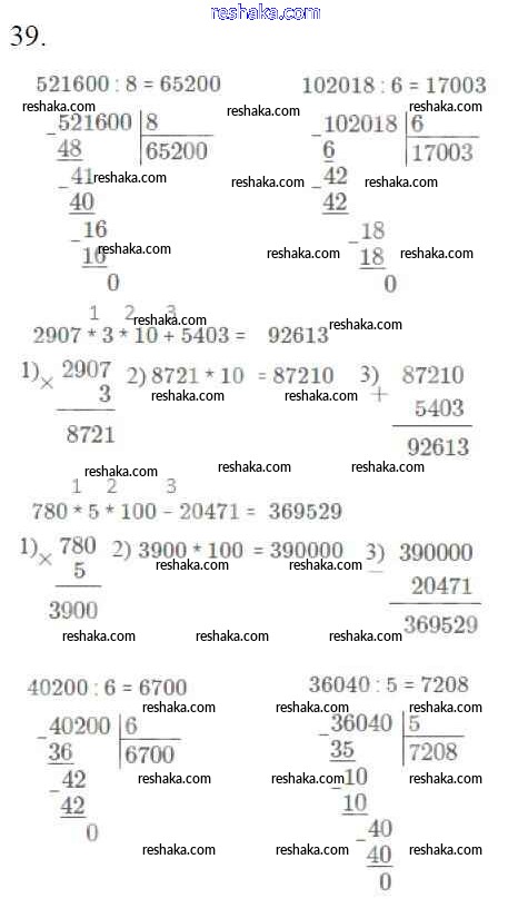 Решака - онлайн ответы Математика Моро, Бантова за 4 класс Учебник ФГОС 2015 - 39