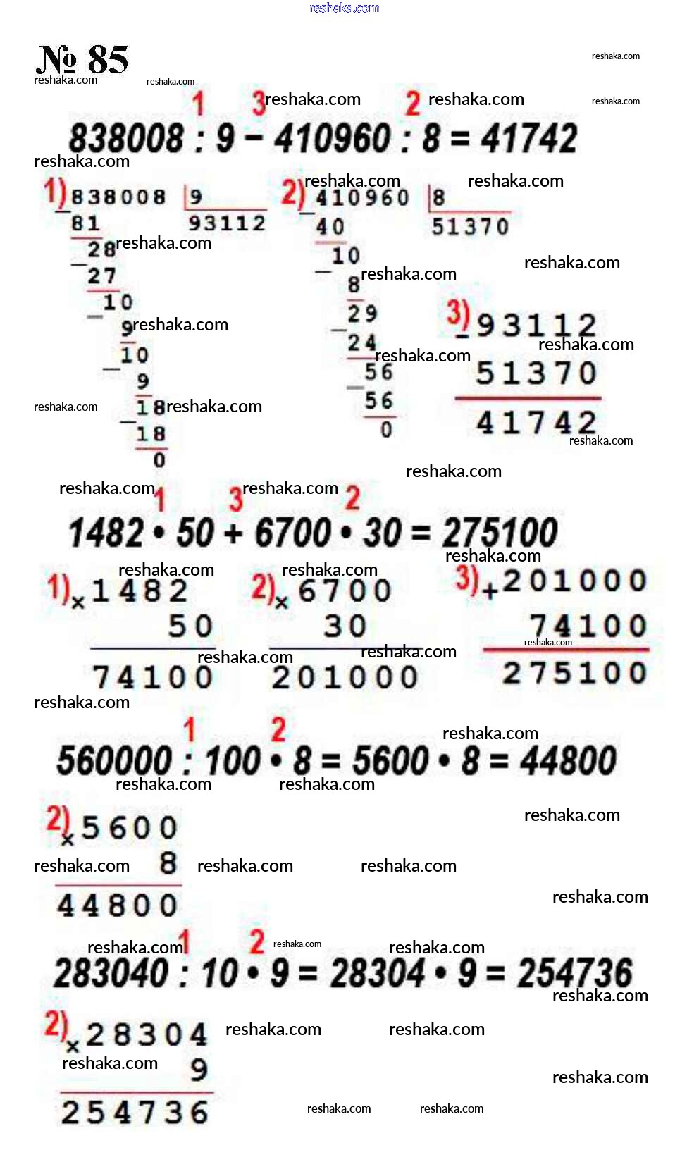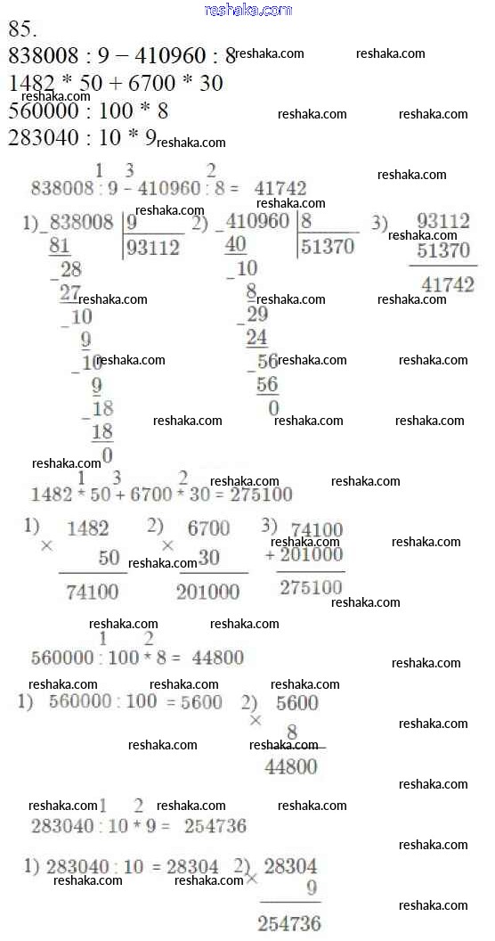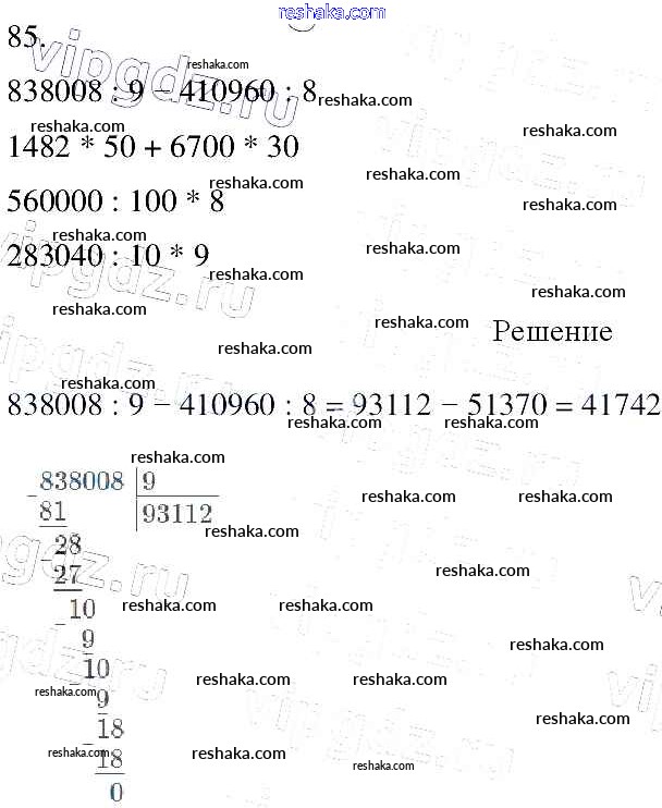 Решака - онлайн ответы Математика Моро, Бантова за 4 класс Учебник ФГОС 2015 - 85