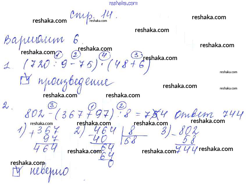 Решака - онлайн ответы Математика Рудницкая за 4 класс Контрольные работы ФГОС 2014 - 14