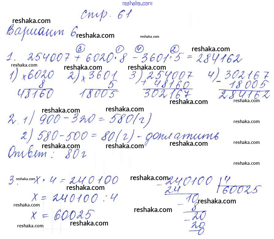 Решака - онлайн ответы Математика Рудницкая за 4 класс Контрольные работы ФГОС 2014 - 61