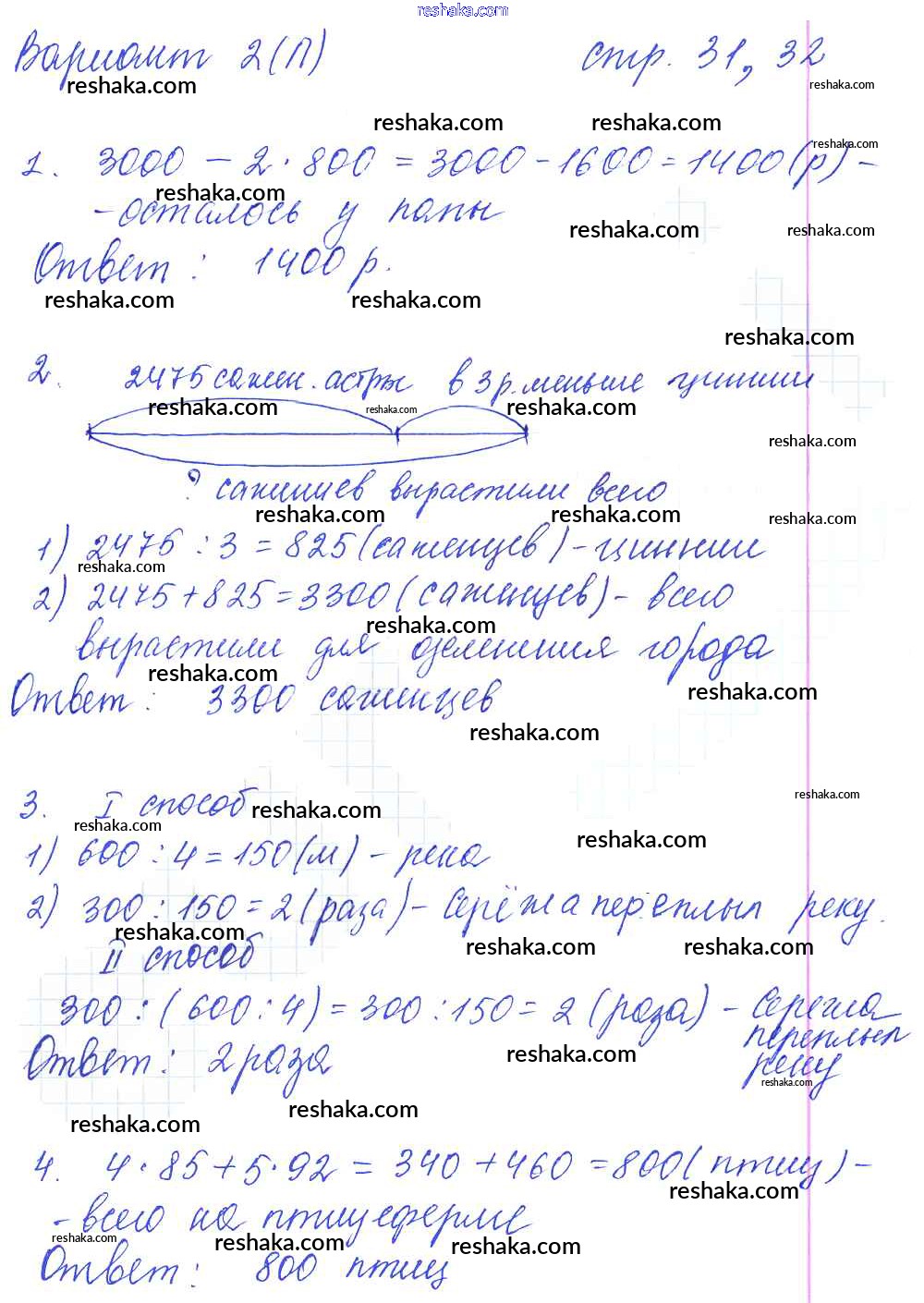 Решака - онлайн ответы Математика Самсонова за 4 класс Тетрадь для самостоятельной работы ФГОС 2011 - 31-32