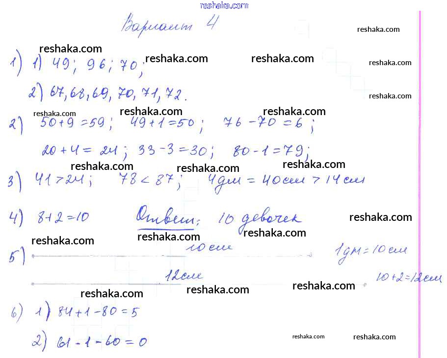 Решака - онлайн ответы Математика Волкова за 2-4 класс Контрольные работы ФГОС 2017 - Вариант 4