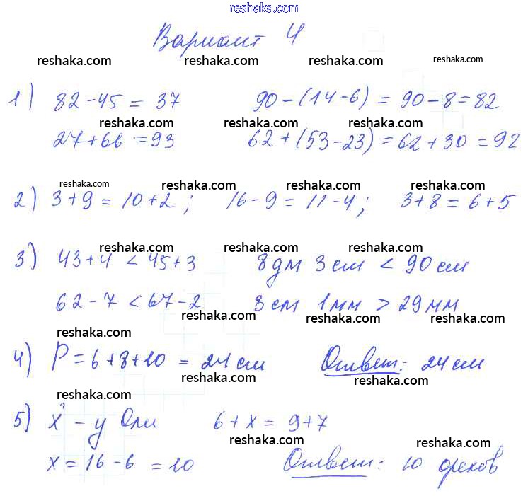 Решака - онлайн ответы Математика Волкова за 2-4 класс Контрольные работы ФГОС 2017 - Вариант 4