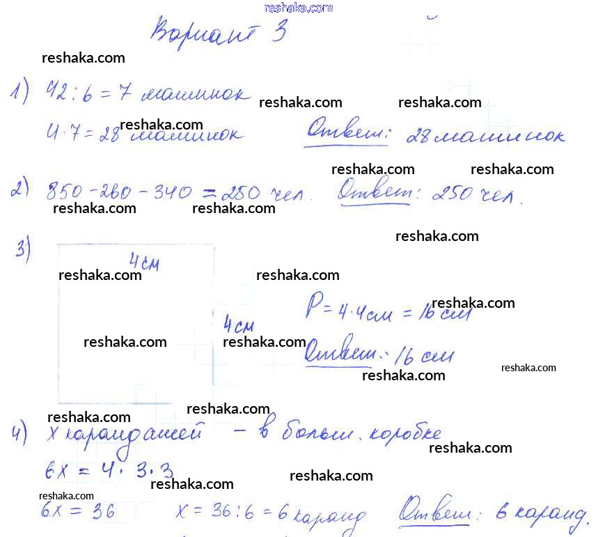 Решака - онлайн ответы Математика Волкова за 2-4 класс Контрольные работы ФГОС 2017 - Вариант 3
