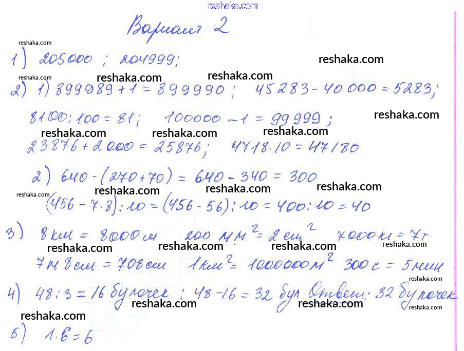 Решака - онлайн ответы Математика Волкова за 2-4 класс Контрольные работы ФГОС 2017 - Вариант 2