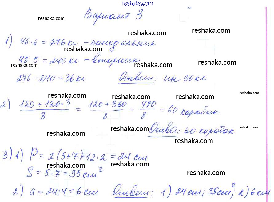 Решака - онлайн ответы Математика Волкова за 2-4 класс Контрольные работы ФГОС 2017 - Вариант 3