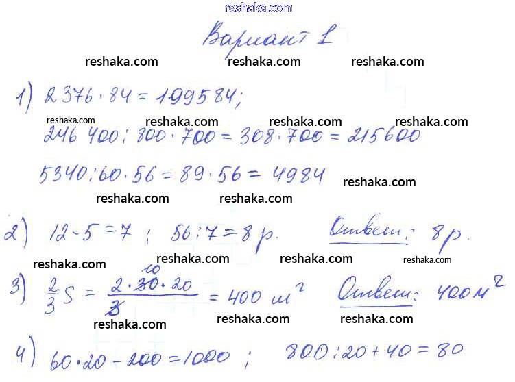 Решака - онлайн ответы Математика Волкова за 2-4 класс Контрольные работы ФГОС 2017 - Вариант 1