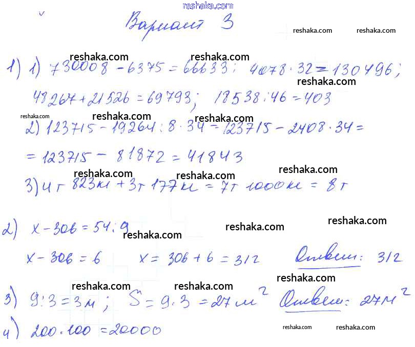 Решака - онлайн ответы Математика Волкова за 2-4 класс Контрольные работы ФГОС 2017 - Вариант 3