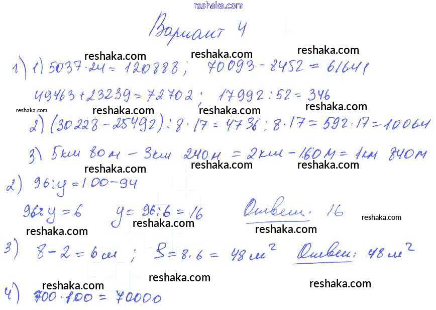 Решака - онлайн ответы Математика Волкова за 2-4 класс Контрольные работы ФГОС 2017 - Вариант 4