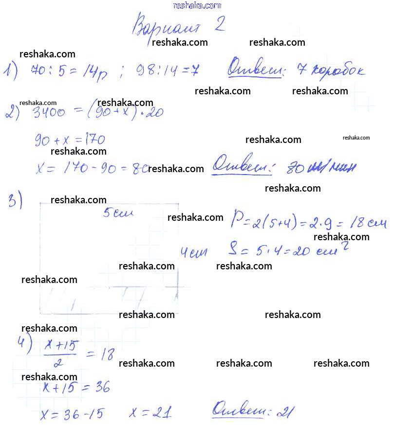 Решака - онлайн ответы Математика Волкова за 2-4 класс Контрольные работы ФГОС 2017 - Вариант 2
