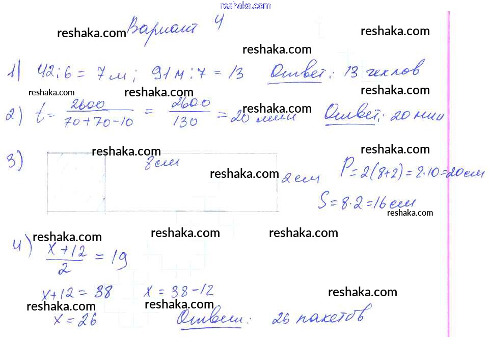 Решака - онлайн ответы Математика Волкова за 2-4 класс Контрольные работы ФГОС 2017 - Вариант 4