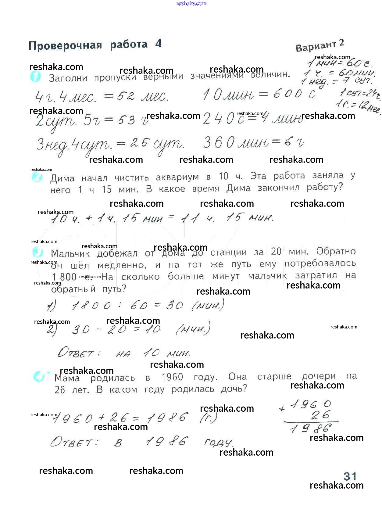 Решака - онлайн ответы Математика Волкова за 4 класс Проверочные работы ФГОС 2014 - 31