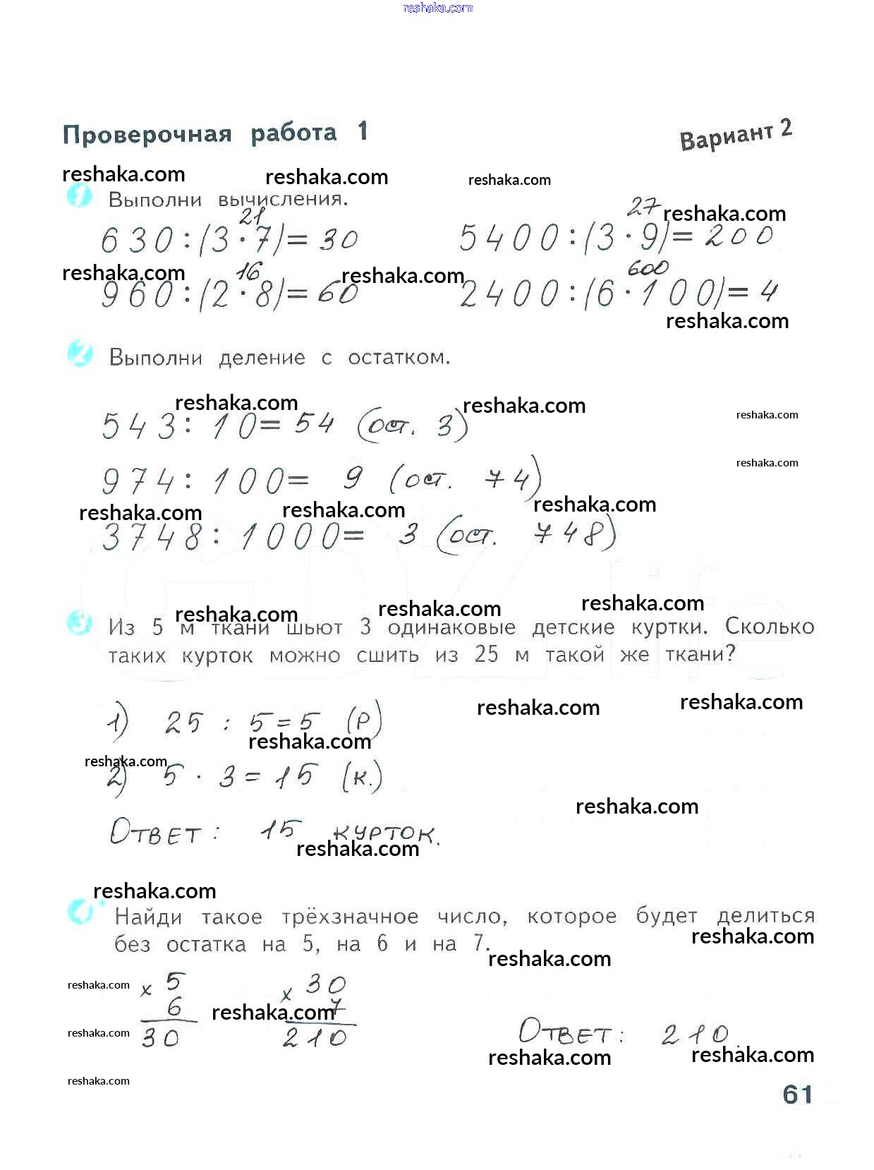 Решака - онлайн ответы Математика Волкова за 4 класс Проверочные работы ФГОС 2014 - 61