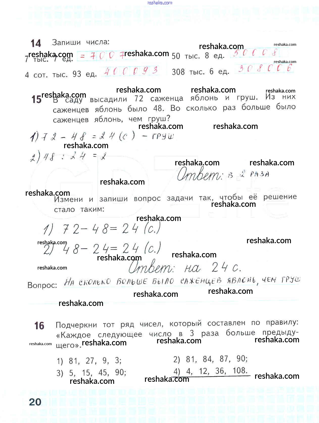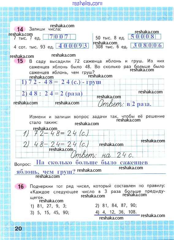 Решака - онлайн ответы Математика Волкова за 4 класс Рабочая тетрадь ФГОС 2016 - 20
