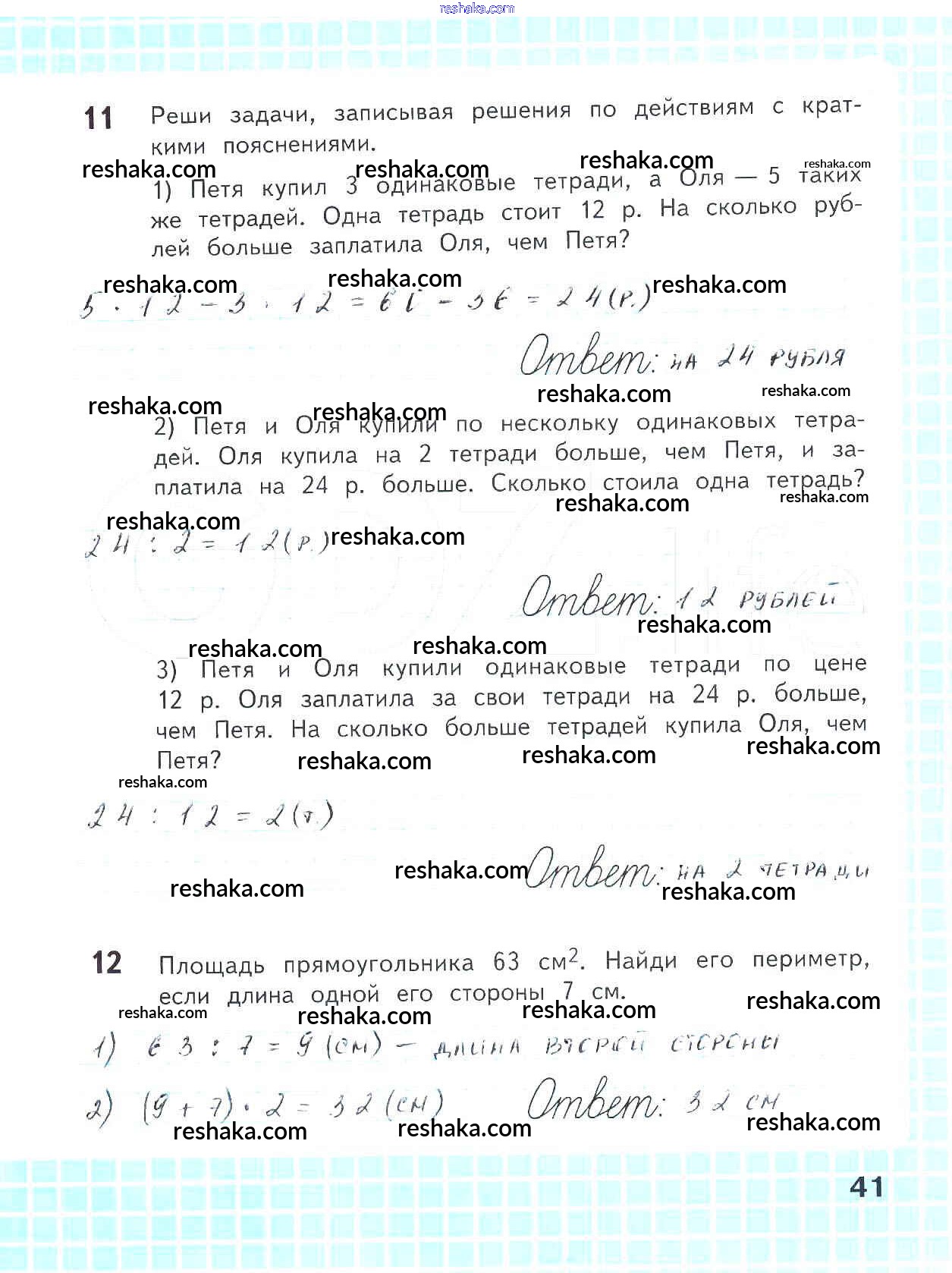 Решака - онлайн ответы Математика Волкова за 4 класс Рабочая тетрадь ФГОС 2016 - 41