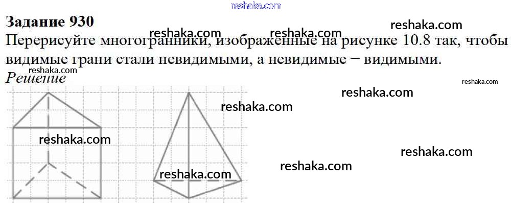 Представляем вам сборники по Математике, с готовыми ответами к Учебнику Дорофеев школьной программы для учеников пятый класса. Это не просто гдз с ответом, а с подсказками, как верно решить 10.1. Геометрические тела и их изображение Глава 10. Многогранники 930. Проверяй домашку с умом и получай высший балл!
