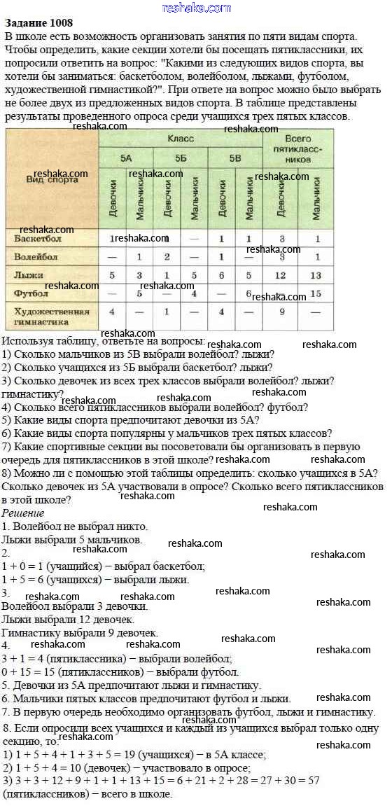 Решака - онлайн ответы Математика Дорофеев, Шарыгин за 5 класс Учебник ФГОС 2015 - 1008