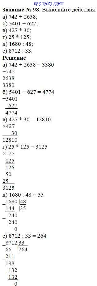 Решака - онлайн ответы Математика Дорофеев, Шарыгин за 5 класс Учебник ФГОС 2015 - 98