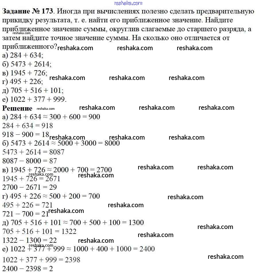 Решака - онлайн ответы Математика Дорофеев, Шарыгин за 5 класс Учебник ФГОС 2015 - 173