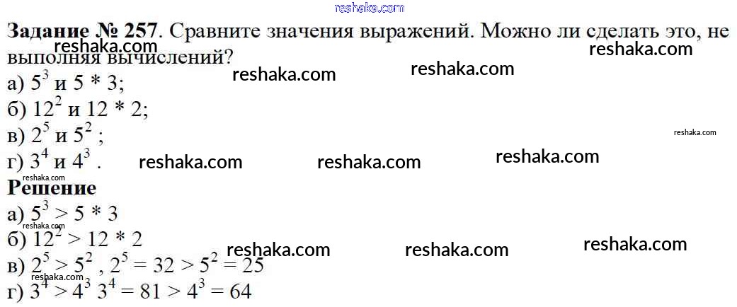Представляем вам сборники по Математике, с готовыми ответами к Учебнику Дорофеев школьной программы для учеников пятый класса. Это не просто гдз с ответом, а с подсказками, как верно решить 3.4. Степень числа Глава 3. Действия с натуральными числами 257. Проверяй домашку с умом и получай высший балл!