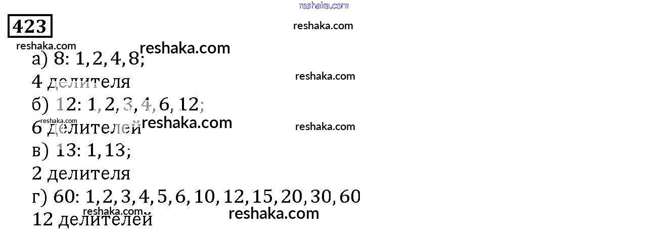 Представляем вам сборники по Математике, с готовыми ответами к Учебнику Дорофеев школьной программы для учеников пятый класса. Это не просто гдз с ответом, а с подсказками, как верно решить 6.1. Делители и кратные Глава 6. Делимость чисел 423. Проверяй домашку с умом и получай высший балл!