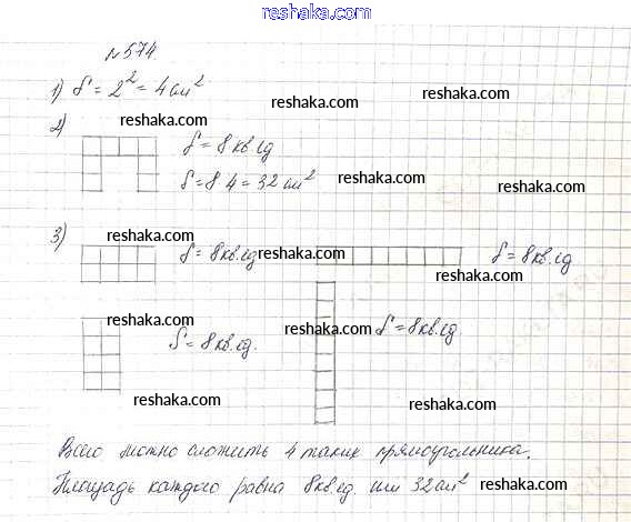 Представляем вам сборники по Математике, с готовыми ответами к Учебнику Дорофеев школьной программы для учеников пятый класса. Это не просто гдз с ответом, а с подсказками, как верно решить 7.4. Площадь прямоугольника Глава 7. Треугольники и четырехугольники 574. Проверяй домашку с умом и получай высший балл!
