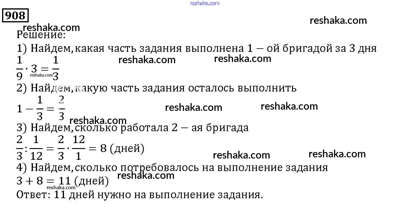 Представляем вам сборники по Математике, с готовыми ответами к Учебнику Дорофеев школьной программы для учеников пятый класса. Это не просто гдз с ответом, а с подсказками, как верно решить 9.7. Задачи на совместную работу Глава 9. Действия с дробями 908. Проверяй домашку с умом и получай высший балл!