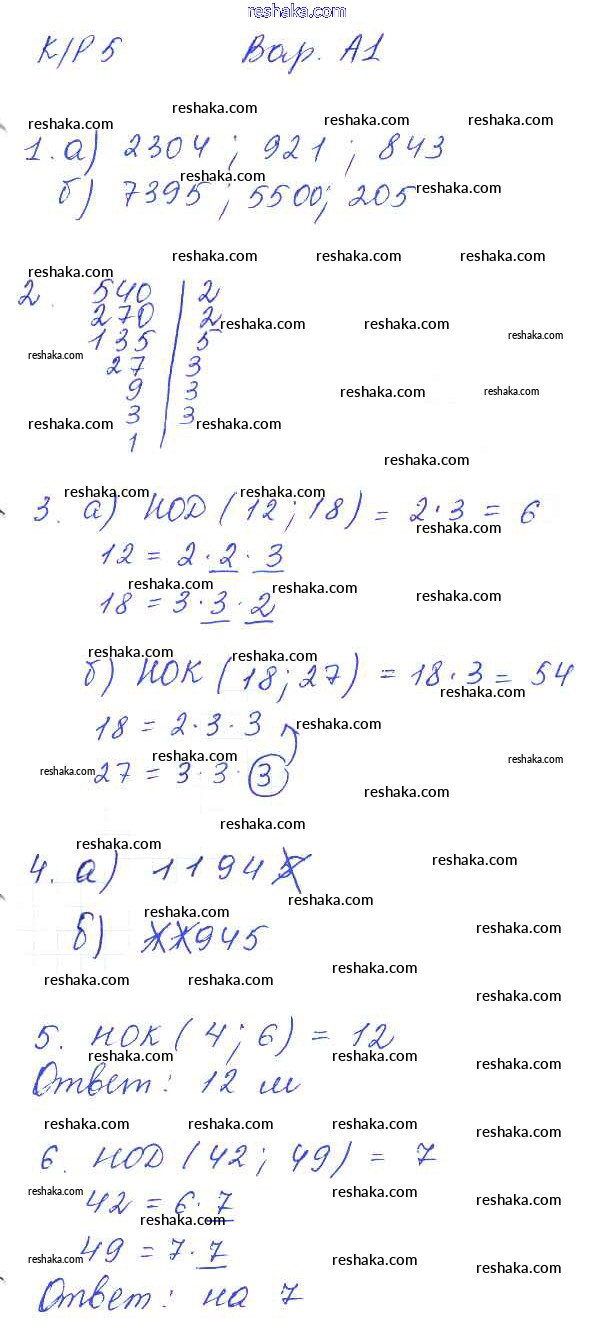 Решака - онлайн ответы Математика Ерина за 5 класс Контрольные работы ФГОС 2020 - 1