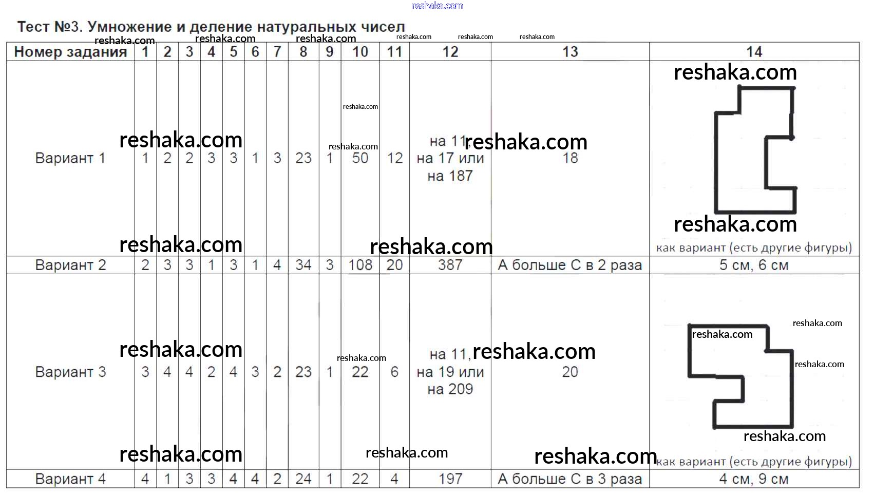 Решака - онлайн ответы Математика Ерина за 5 класс Тесты ФГОС 2017 - Тест №3. Умножение и деление натуральных чисел