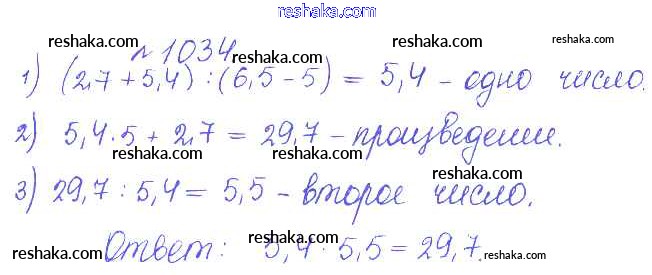 Решака - онлайн ответы Математика Гамбарин, Зубарева за 5 класс Сборник задач и упражнений ФГОС 2011 - 1034