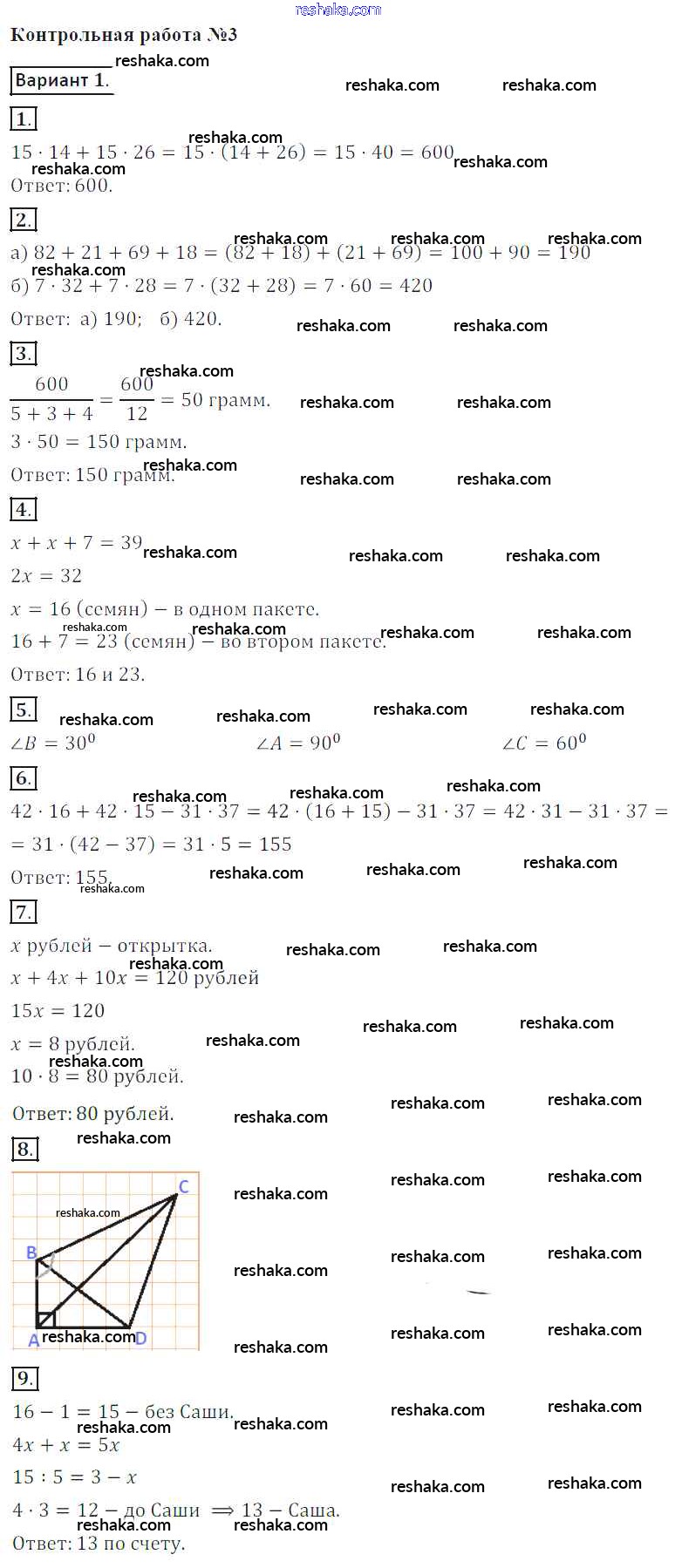 Решака - онлайн ответы Математика Кузнецова, Минаева за 5 класс Контрольные работы ФГОС 2018 - вариант-1