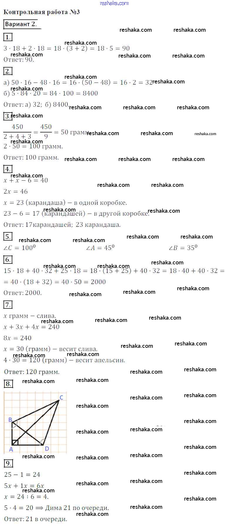 Представляем вам сборники по Математике, с готовыми ответами к Контрольным работам Кузнецова школьной программы для учеников пятый класса. Это не просто гдз с ответом, а с подсказками, как верно решить КР №3. Использование свойств действий при вычислениях. Углы и многоугольники вариант-2. Проверяй домашку с умом и получай высший балл!
