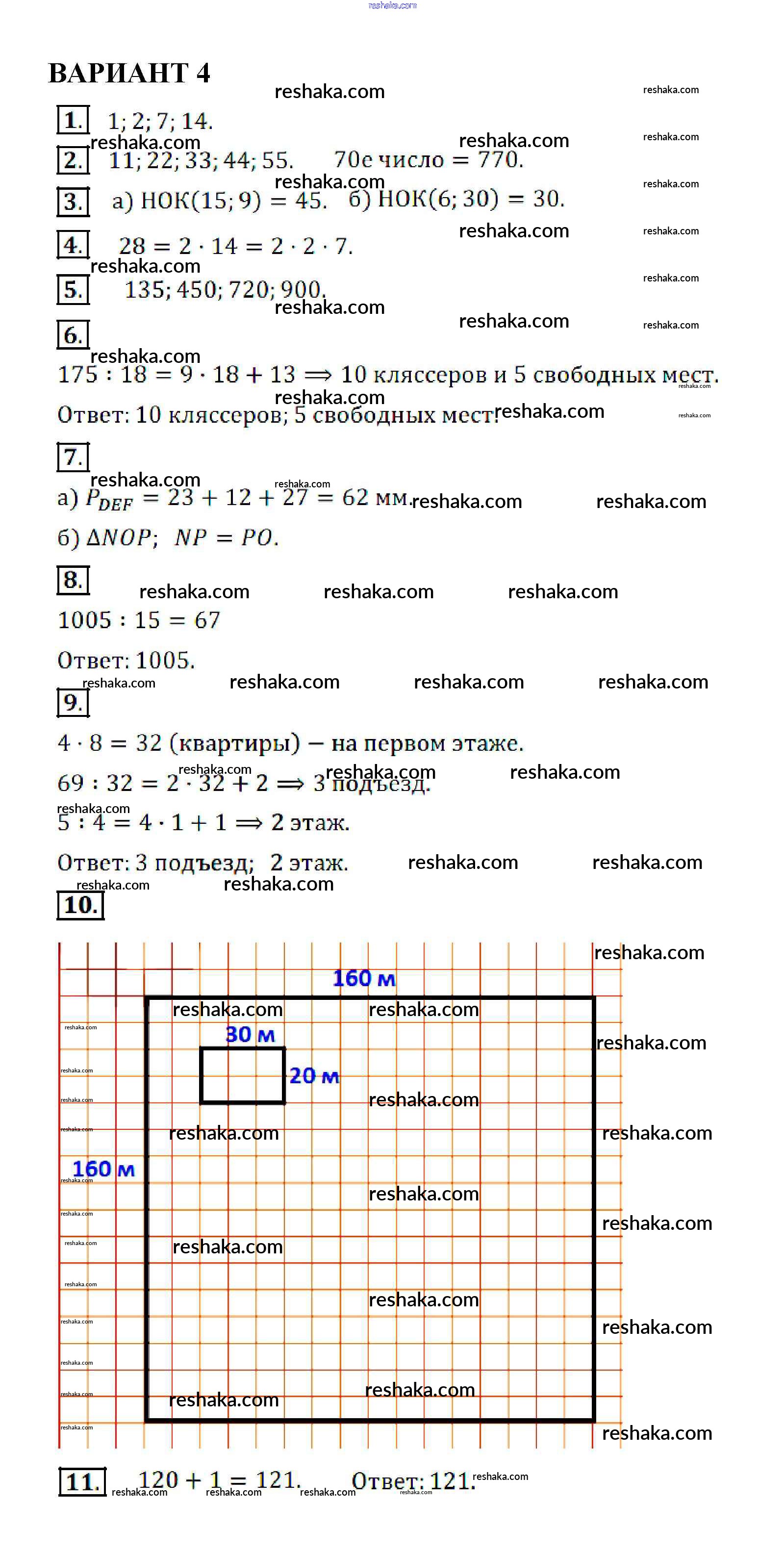 Решака - онлайн ответы Математика Кузнецова, Минаева за 5 класс Контрольные работы ФГОС 2018 - вариант-4