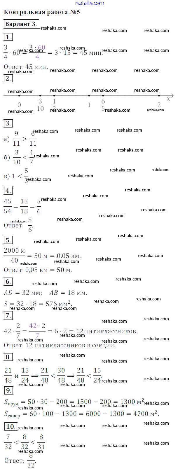 Решака - онлайн ответы Математика Кузнецова, Минаева за 5 класс Контрольные работы ФГОС 2018 - вариант-3