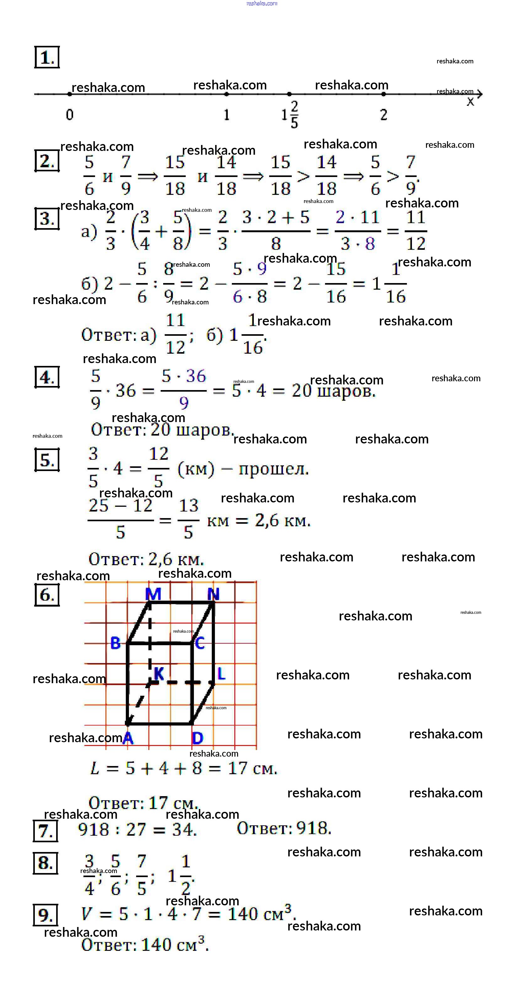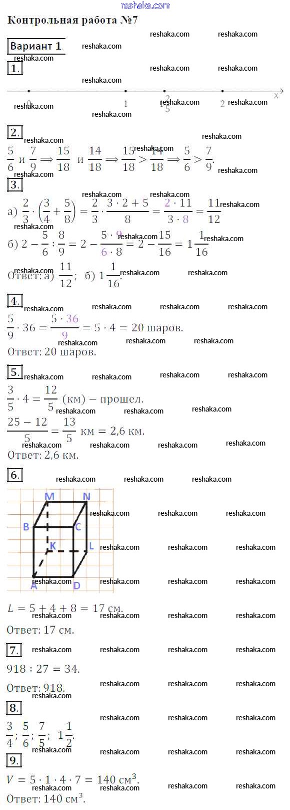 Решака - онлайн ответы Математика Кузнецова, Минаева за 5 класс Контрольные работы ФГОС 2018 - вариант-1