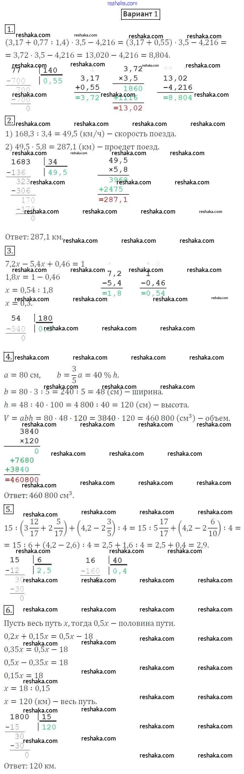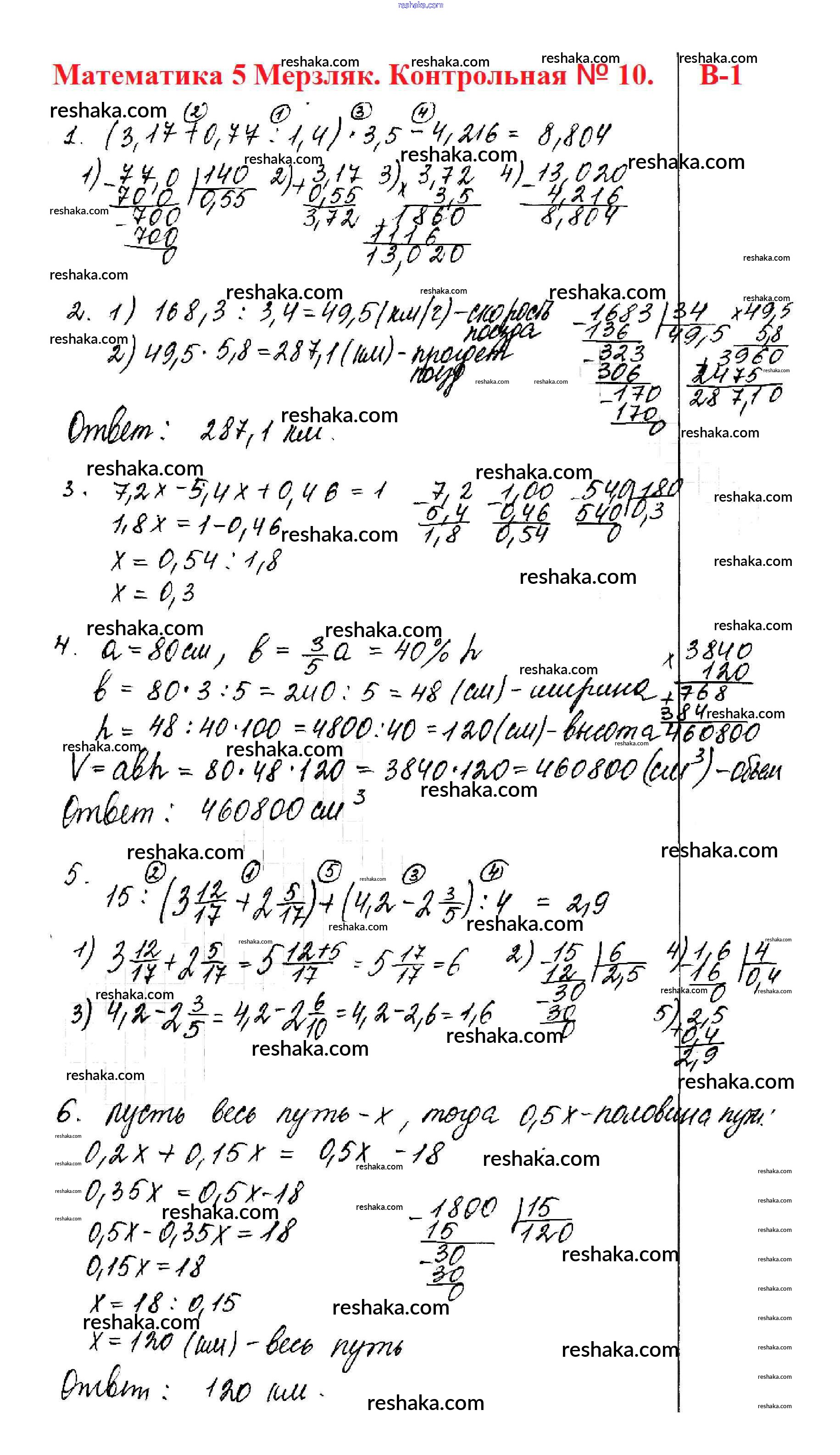 Решака - онлайн ответы Математика Мерзляк, Полонский за 5 класс Дидактические материалы ФГОС 2017 - вариант 1