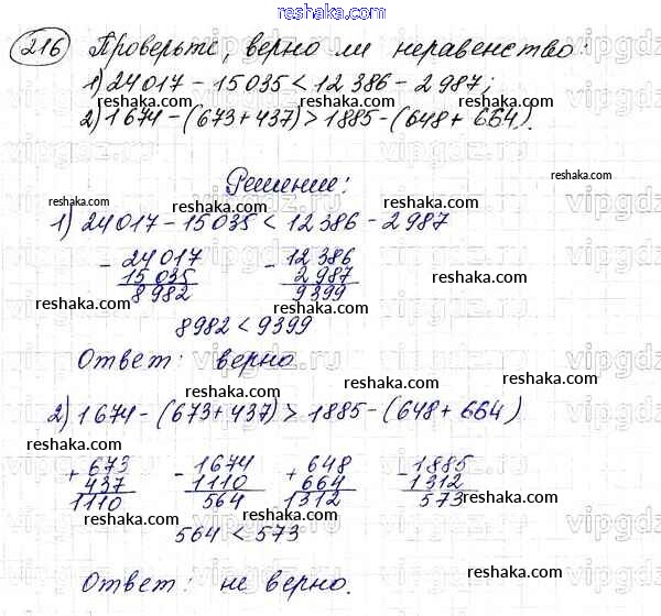 Решака - онлайн ответы Математика Мерзляк, Полонский за 5 класс Учебник ФГОС 2016 - 216