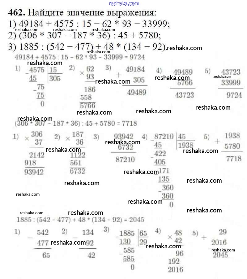 Решака - онлайн ответы Математика Мерзляк, Полонский за 5 класс Учебник ФГОС 2016 - 462