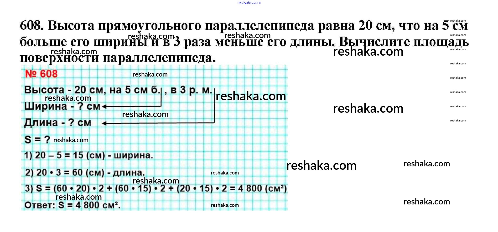Представляем вам сборники по Математике, с готовыми ответами к Учебнику Мерзляк школьной программы для учеников пятый класса. Это не просто гдз с ответом, а с подсказками, как верно решить §22. Прямоугольный параллелепипед. Пирамида Глава 3. Умножение и деление натуральных чисел 608. Проверяй домашку с умом и получай высший балл!