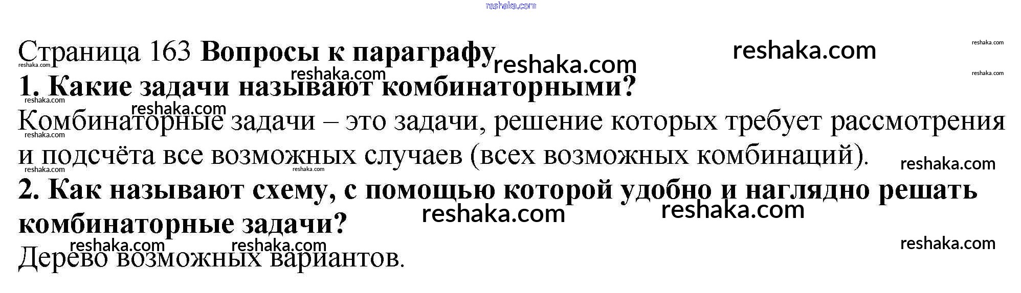 Представляем вам сборники по Математике, с готовыми ответами к Учебнику Мерзляк школьной программы для учеников пятый класса. Это не просто гдз с ответом, а с подсказками, как верно решить Вопросы (страница 163) §24. Комбинаторные задачи страница 163. Проверяй домашку с умом и получай высший балл!