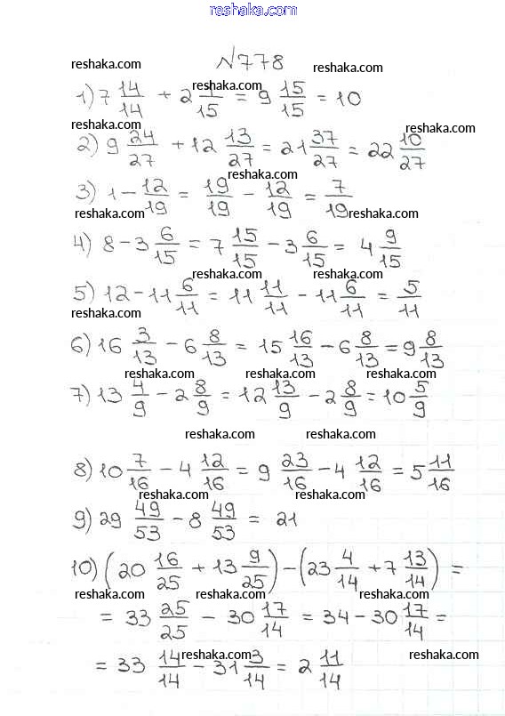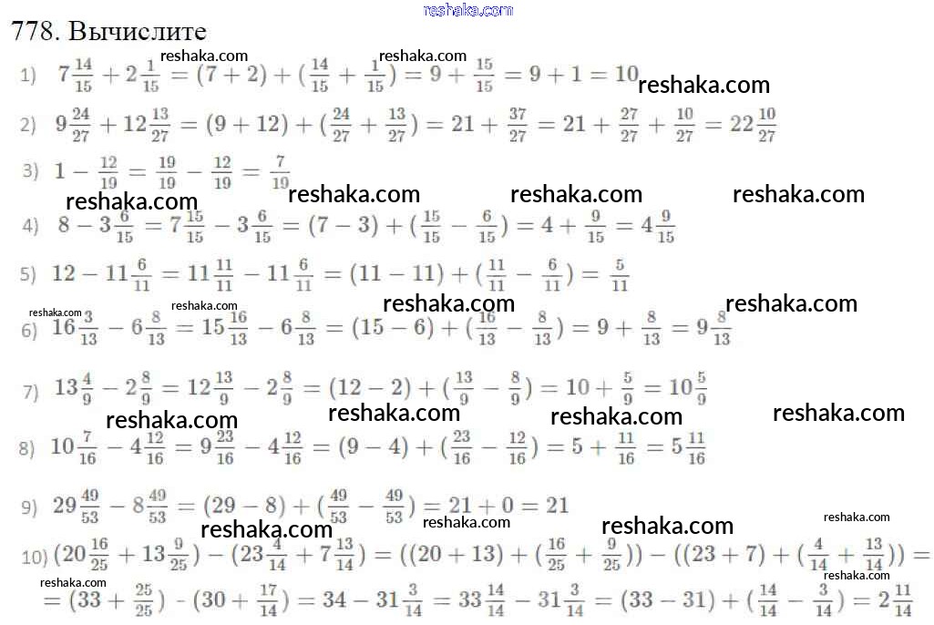 Представляем вам сборники по Математике, с готовыми ответами к Учебнику Мерзляк школьной программы для учеников пятый класса. Это не просто гдз с ответом, а с подсказками, как верно решить §29. Смешанные числа Глава 4. Обыкновенные дроби 778. Проверяй домашку с умом и получай высший балл!