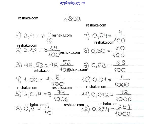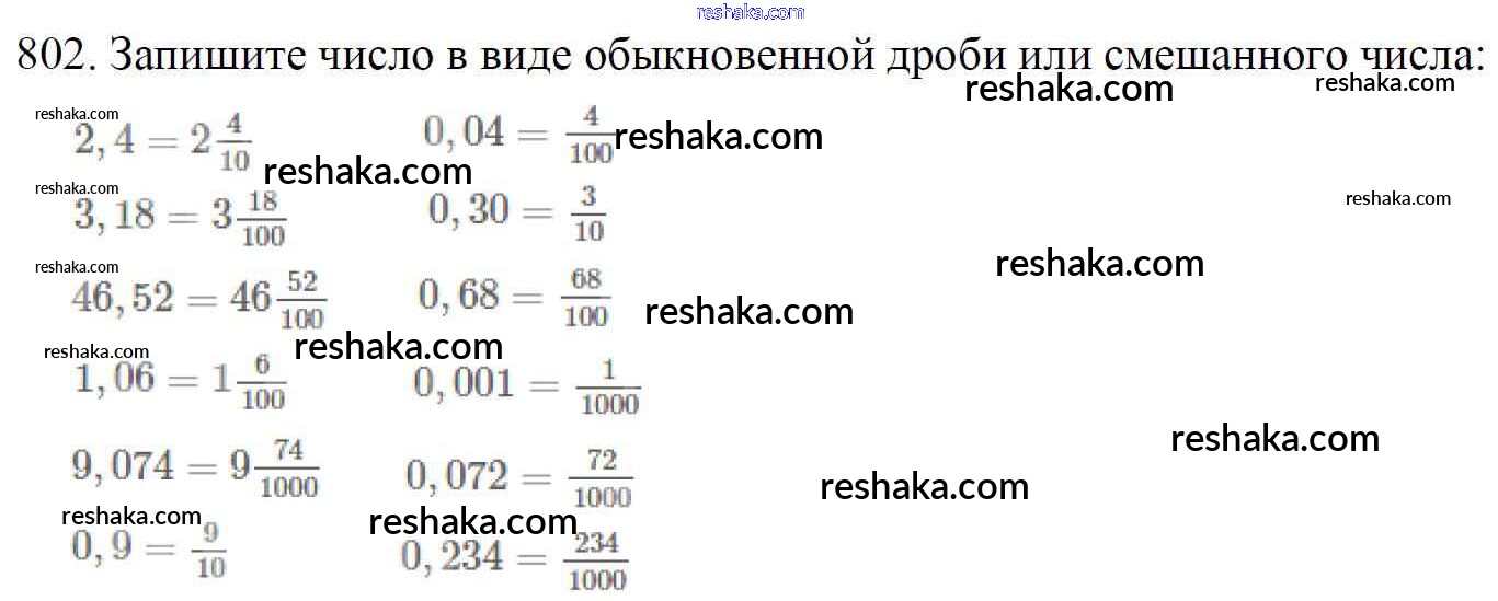 Представляем вам сборники по Математике, с готовыми ответами к Учебнику Мерзляк школьной программы для учеников пятый класса. Это не просто гдз с ответом, а с подсказками, как верно решить §30. Представление о десятичных дробях Глава 5. Десятичные дроби 802. Проверяй домашку с умом и получай высший балл!