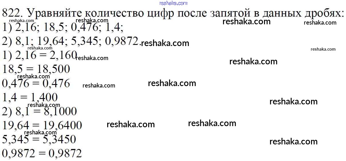Решака - онлайн ответы Математика Мерзляк, Полонский за 5 класс Учебник ФГОС 2016 - 822
