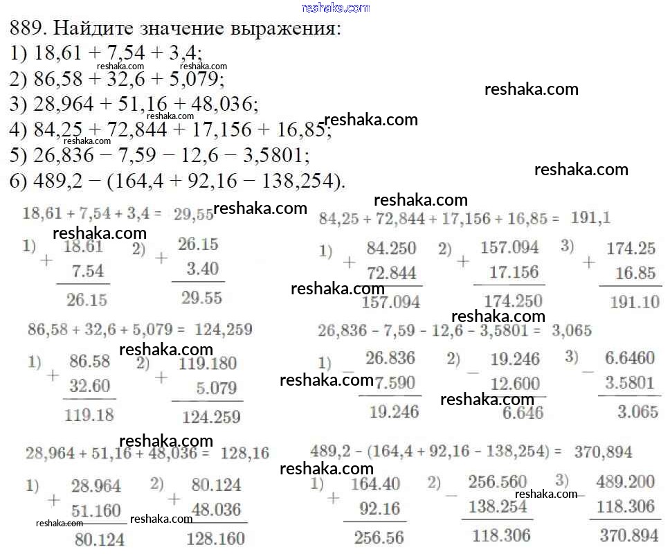 Представляем вам сборники по Математике, с готовыми ответами к Учебнику Мерзляк школьной программы для учеников пятый класса. Это не просто гдз с ответом, а с подсказками, как верно решить §33. Сложение и вычитание десятичных дробей Глава 5. Десятичные дроби 889. Проверяй домашку с умом и получай высший балл!