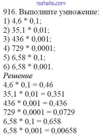 Представляем вам сборники по Математике, с готовыми ответами к Учебнику Мерзляк школьной программы для учеников пятый класса. Это не просто гдз с ответом, а с подсказками, как верно решить §34. Умножение десятичных дробей Глава 5. Десятичные дроби 916. Проверяй домашку с умом и получай высший балл!