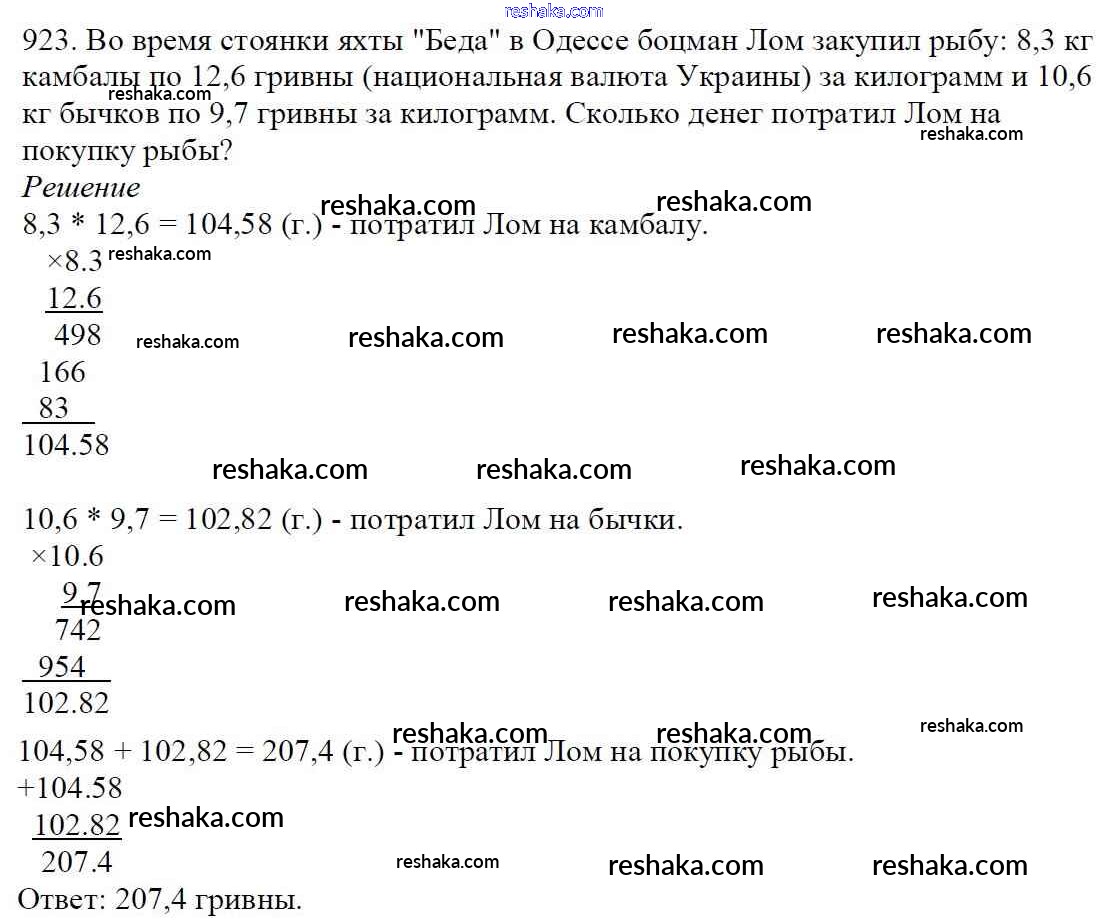 Решака - онлайн ответы Математика Мерзляк, Полонский за 5 класс Учебник ФГОС 2016 - 923
