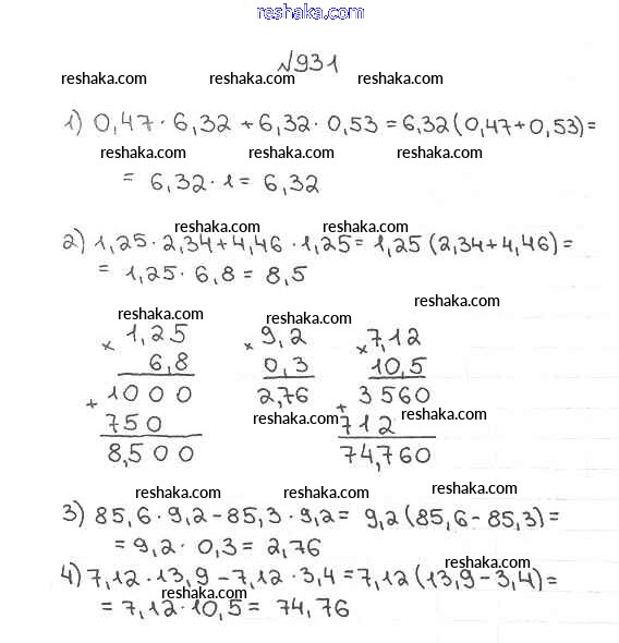 Представляем вам сборники по Математике, с готовыми ответами к Учебнику Мерзляк школьной программы для учеников пятый класса. Это не просто гдз с ответом, а с подсказками, как верно решить §34. Умножение десятичных дробей Глава 5. Десятичные дроби 931. Проверяй домашку с умом и получай высший балл!