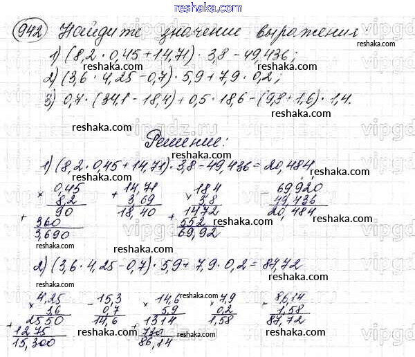 Решака - онлайн ответы Математика Мерзляк, Полонский за 5 класс Учебник ФГОС 2016 - 942