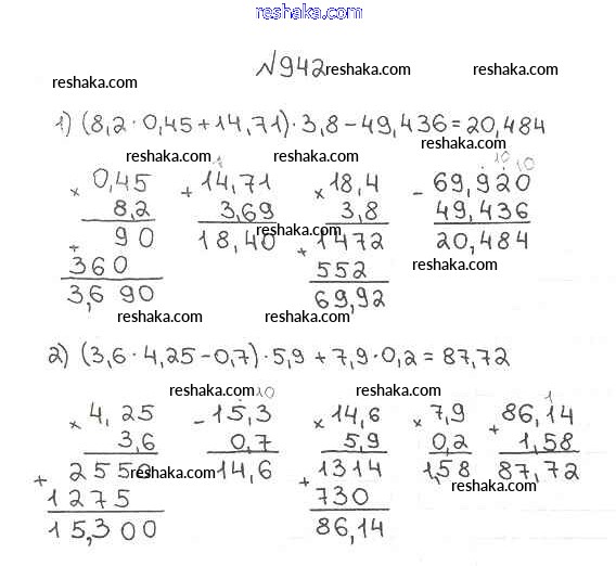 Представляем вам сборники по Математике, с готовыми ответами к Учебнику Мерзляк школьной программы для учеников пятый класса. Это не просто гдз с ответом, а с подсказками, как верно решить §34. Умножение десятичных дробей Глава 5. Десятичные дроби 942. Проверяй домашку с умом и получай высший балл!