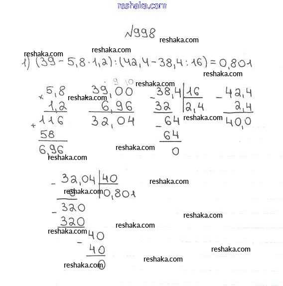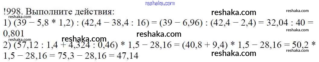 Решака - онлайн ответы Математика Мерзляк, Полонский за 5 класс Учебник ФГОС 2016 - 998
